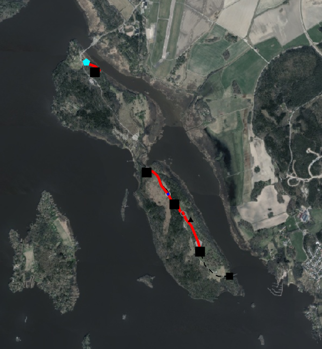 - En kortare sträcka vid friluftscentret Aktiv fritid på den norra delen.